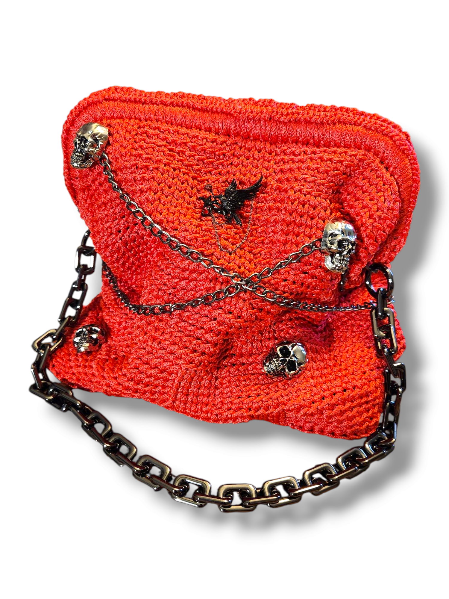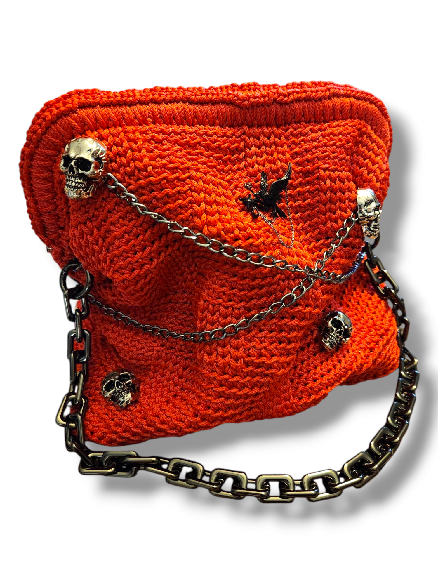 • 🖤 Oversized chain handle + skull detailing for gothic edge