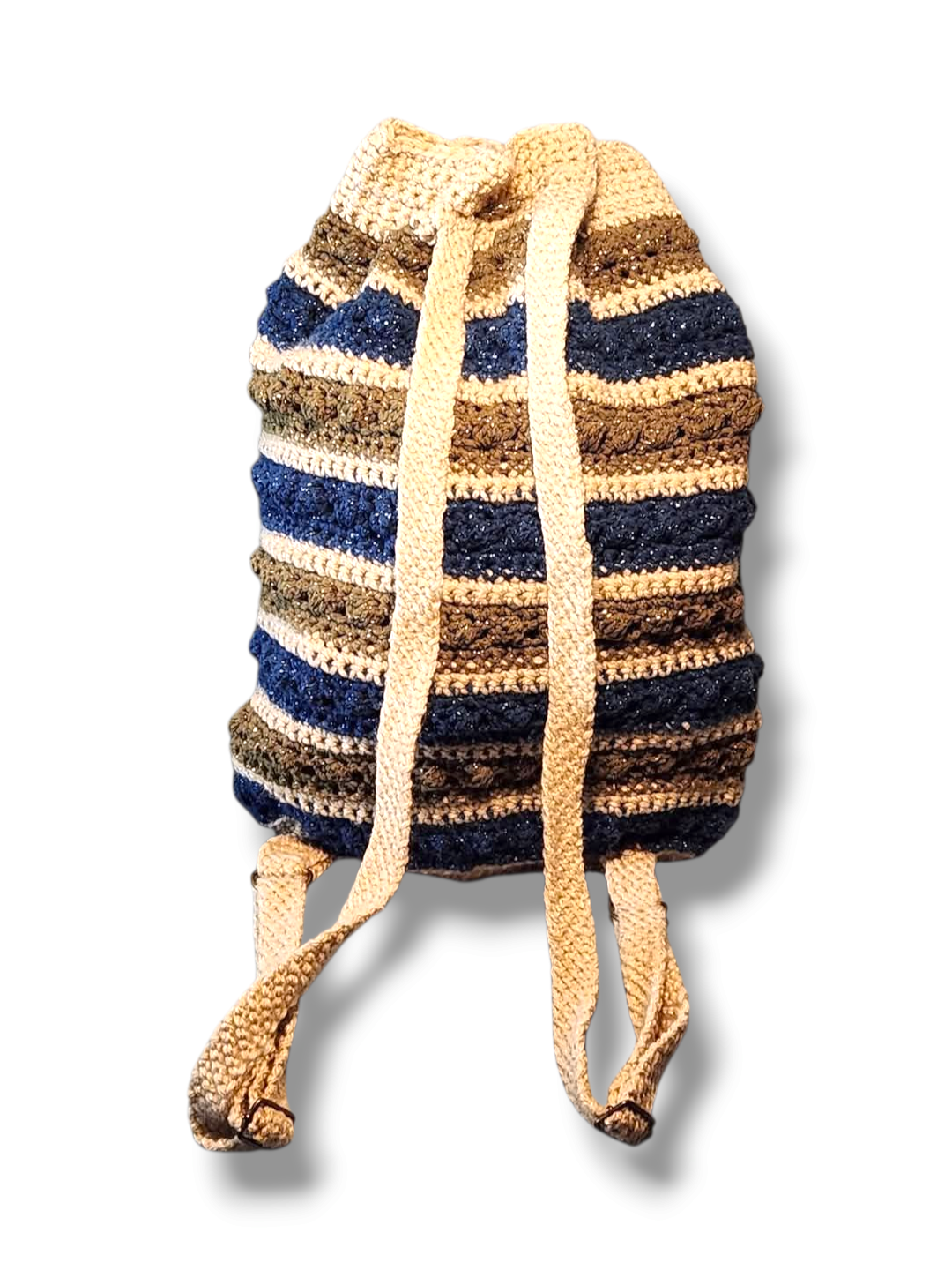 It features adjustable crochet backpack straps for a custom fit, a sturdy top handle, and a woven drawstring closure to keep your things secure and your vibe relaxed.